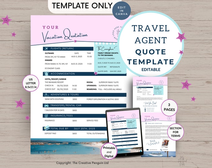 Travel Agency Quote Template Edit in Canva Travel Package Info Admin