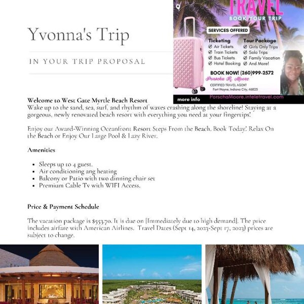 Travel Agent Quote Template: Vacation Itinerary (MS Word) Etsy