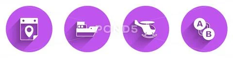 Set Travel planning calendar Ship line path Helicopter and Route