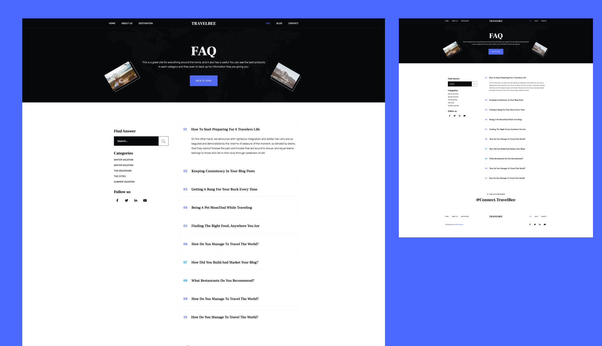 TravelBee Gutenberg Travel Blog Website Template FAQ Page Templately