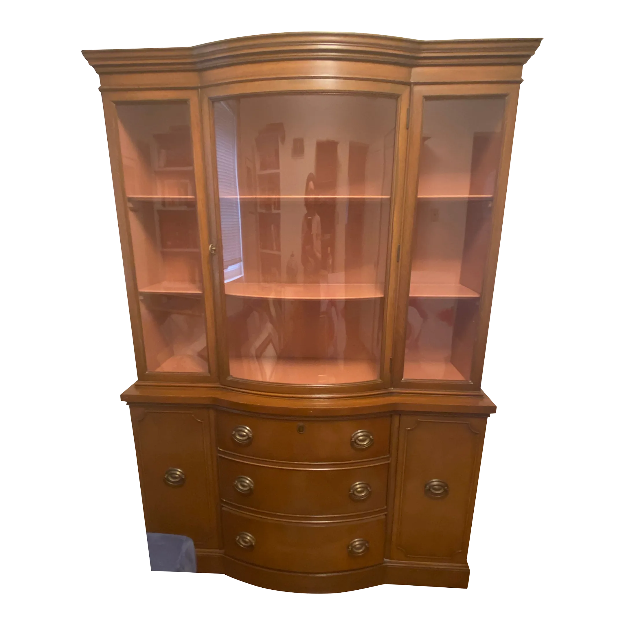 DREXEL CHINA CABINET Mahogany Travis Court Bowed Front VINTAGE
