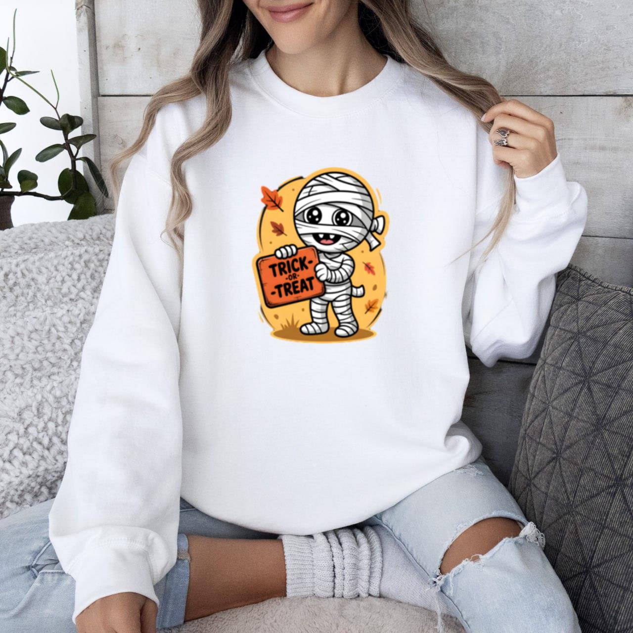 Cute Mummy Trick Or Treat Autumn Halloween Kids Costume Sweatshirt up