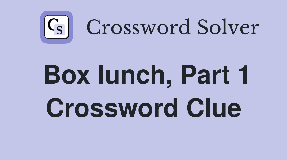 Box lunch Part 1 Crossword Clue Answers Crossword Solver