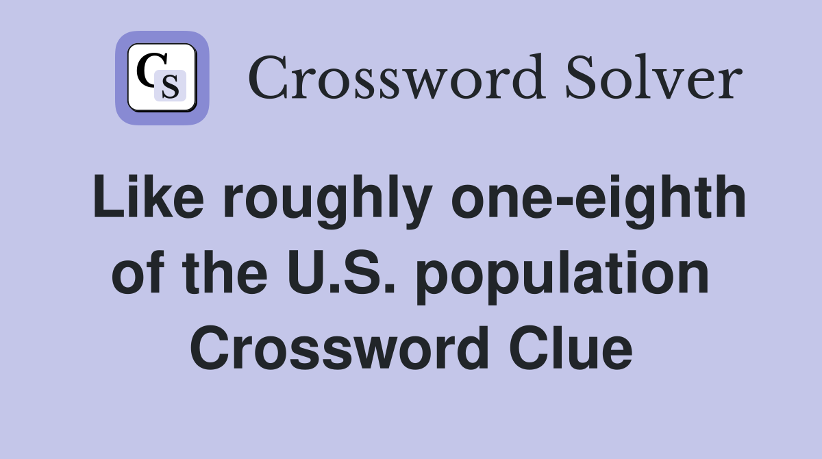 Like roughly one eighth of the U S population Crossword Clue Answers