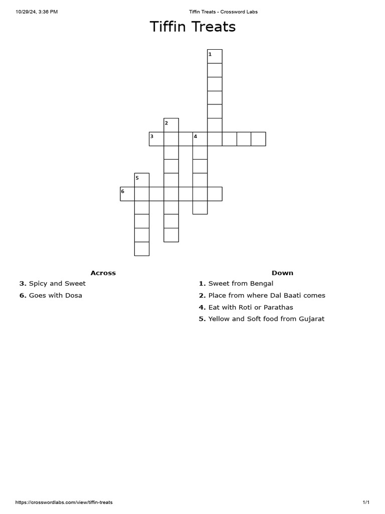 Tiffin Treats Crossword Labs PDF
