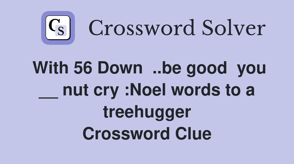 With 56 Down be good you nut cry :Noel words to a treehugger