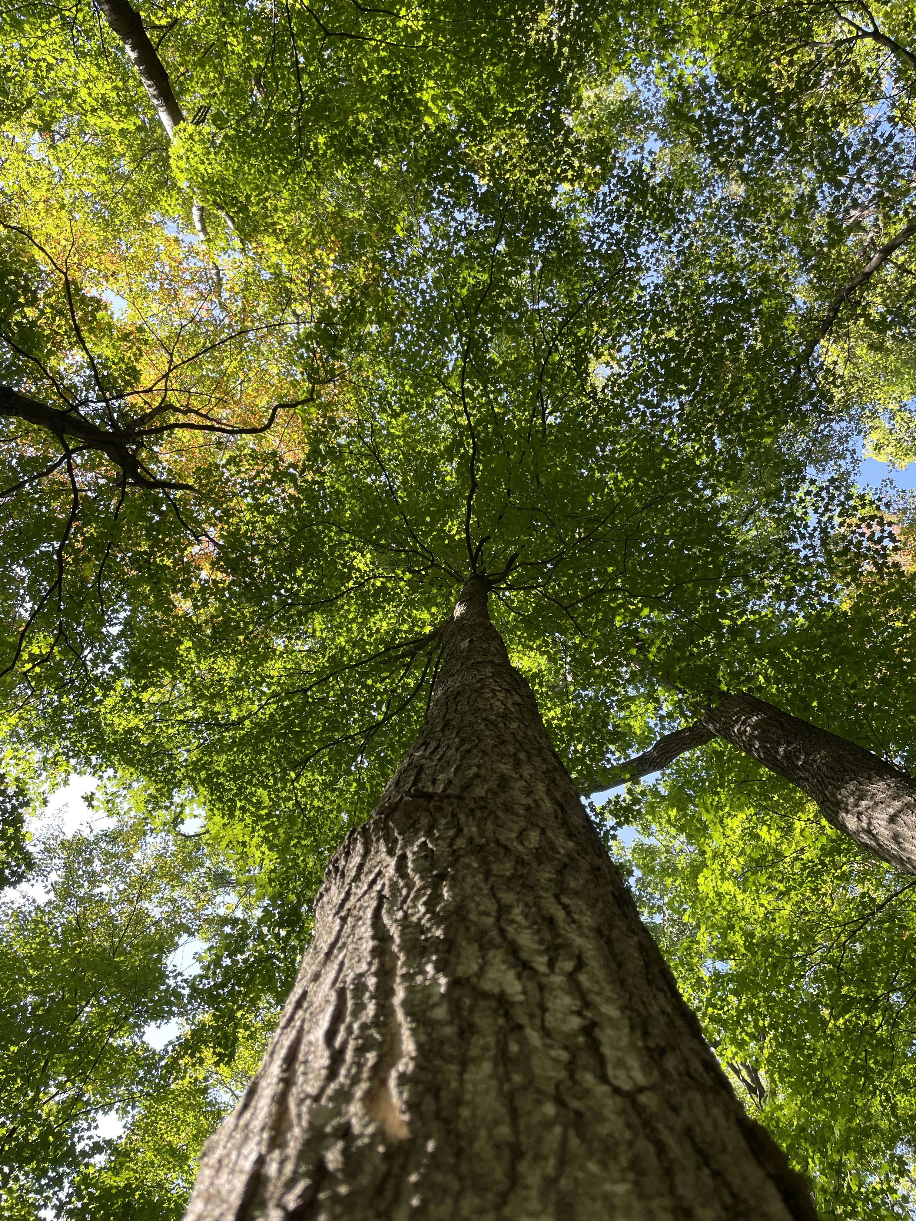 A tall tree standing in the middle of a forest photo Free Fall leaves