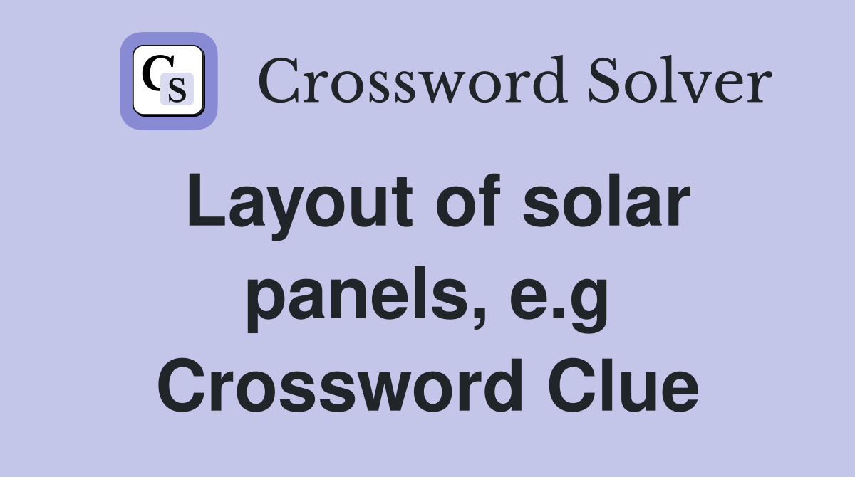 Layout of solar panels e g Crossword Clue Answers Crossword Solver