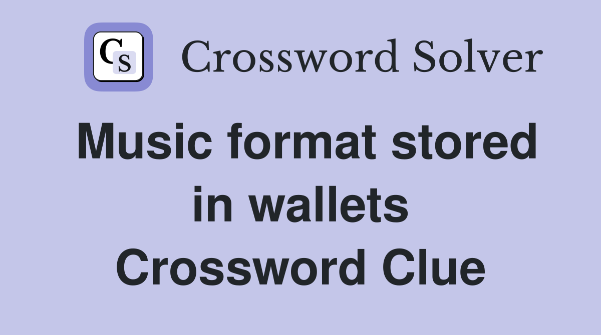 Music format stored in wallets Crossword Clue Answers Crossword Solver