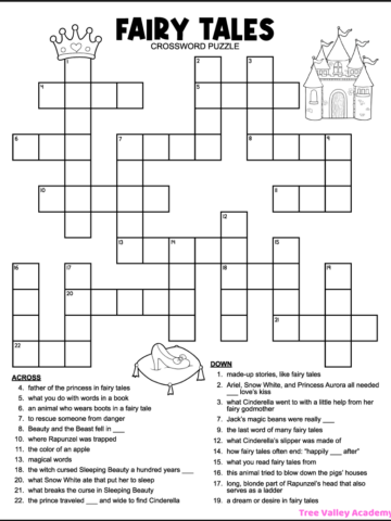 Fairy Tale Crossword Puzzles for Kids Tree Valley Academy
