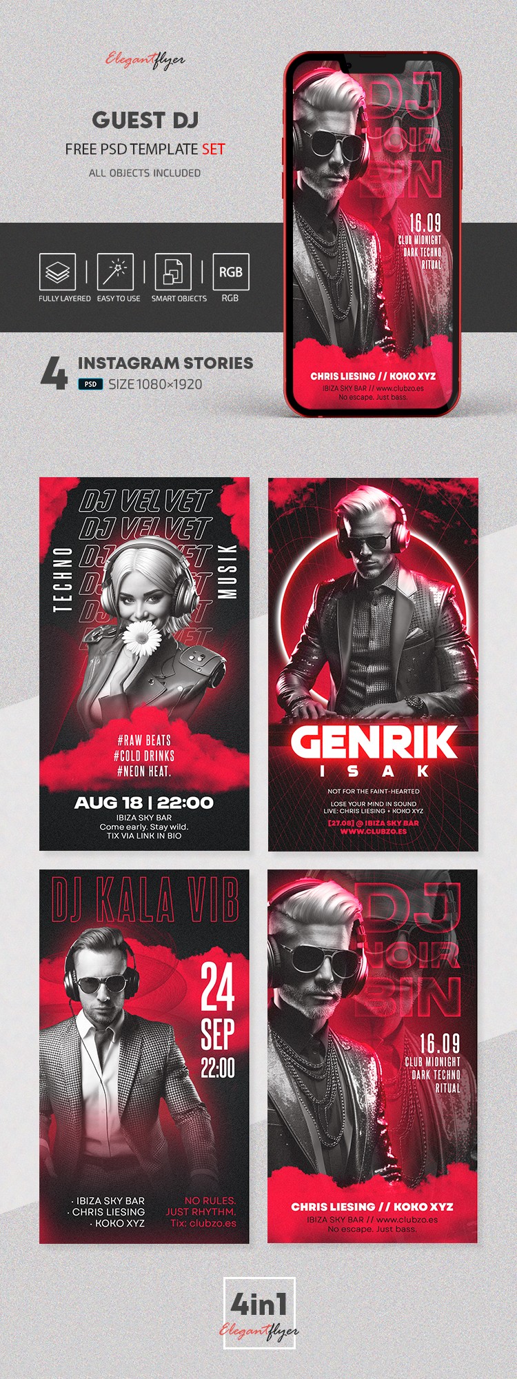 Red Glow Guest DJ Instagram Stories Free Social Media Template PSD by