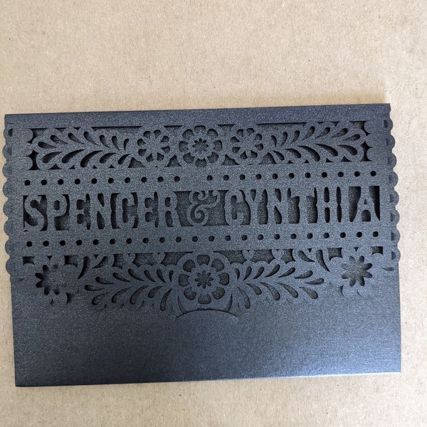 Silver Wedding Invitation Laser Cut Pocket 5x7 DIY Gray Shimmer Tri