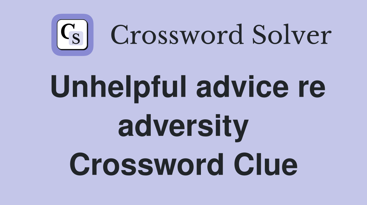 Unhelpful advice re adversity Crossword Clue Answers Crossword Solver