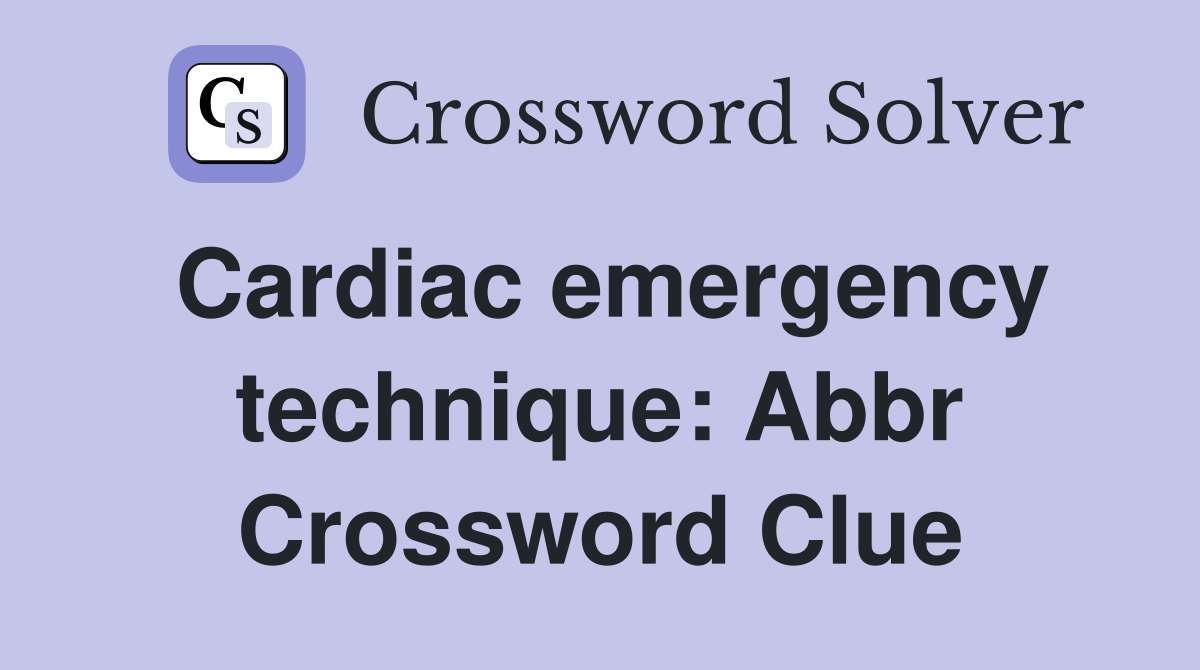 Cardiac emergency technique: Abbr Crossword Clue Answers Crossword