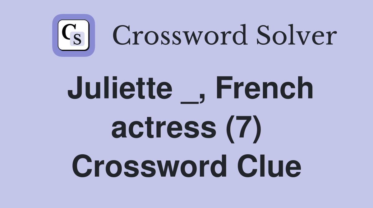 Juliette French actress (7) Crossword Clue Answers Crossword Solver
