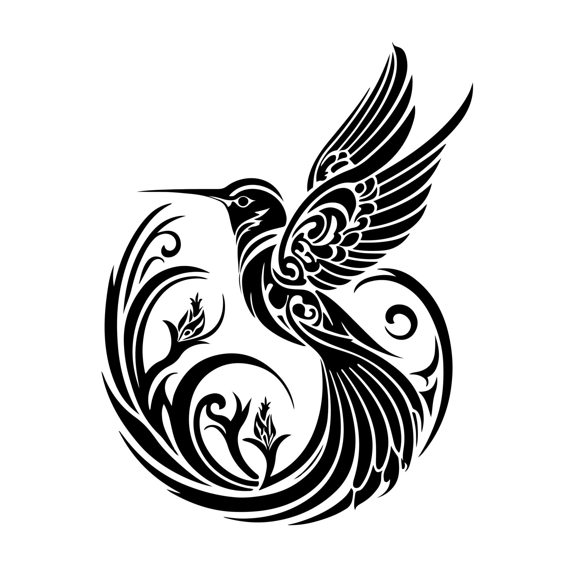Tribal flying hummingbird Ornamental design for logo sign emblem t