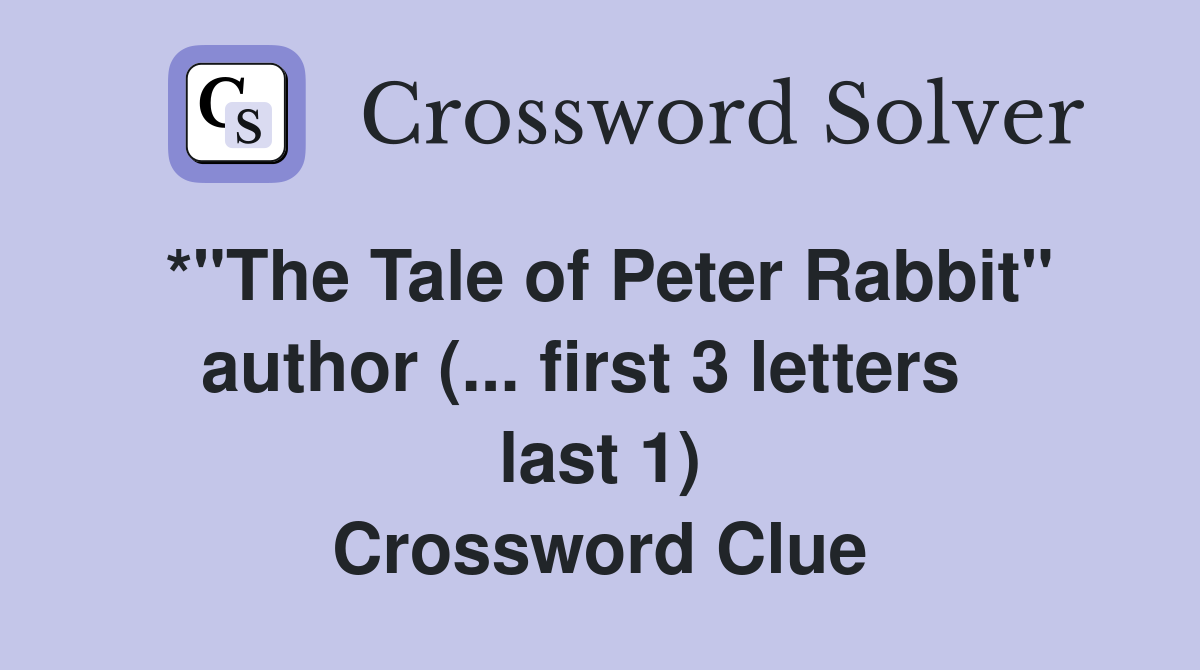 * quot The Tale of Peter Rabbit quot author ( first 3 letters last 1