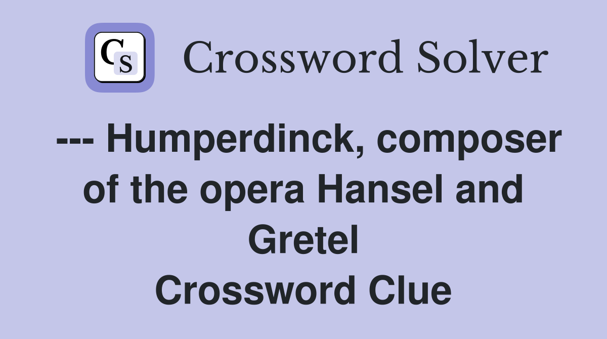 Humperdinck composer of the opera Hansel and Gretel Crossword Clue