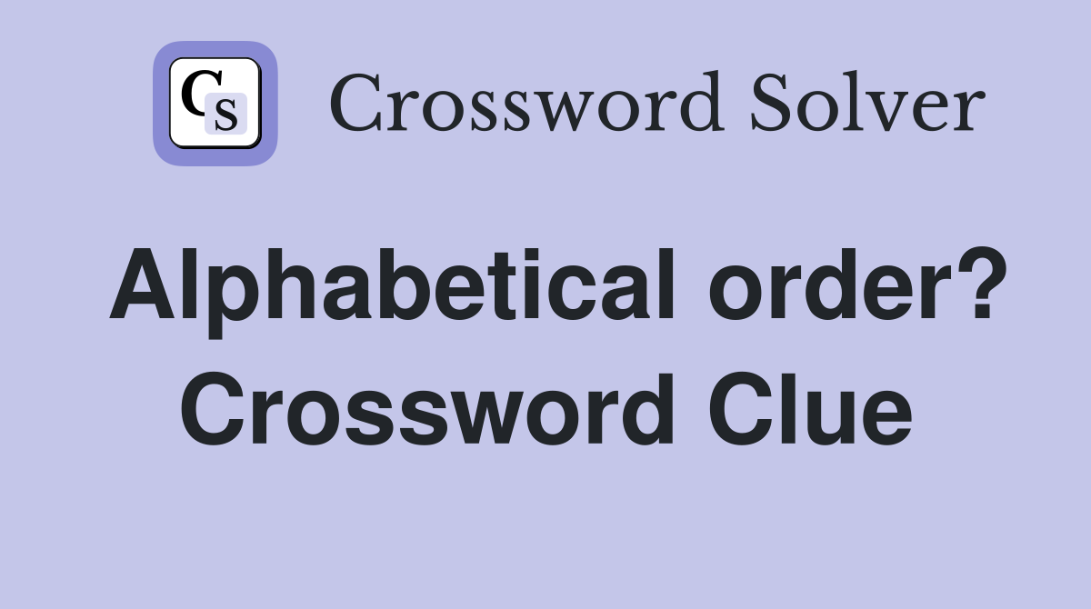 Alphabetical order? Crossword Clue Answers Crossword Solver