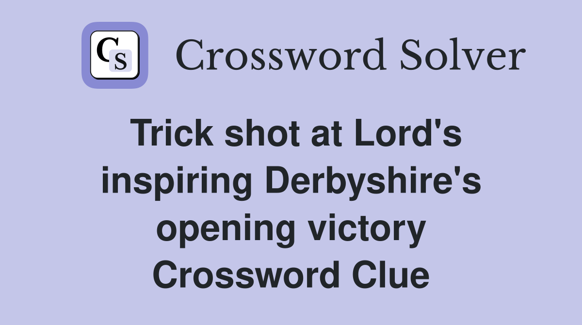 Trick shot at Lord #39 s inspiring Derbyshire #39 s opening victory Crossword