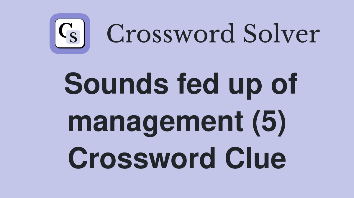 Sounds fed up of management (5) Crossword Clue Answers Crossword Solver