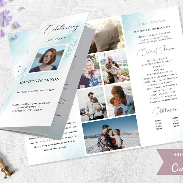 Blue Trifold Obituary Template Etsy