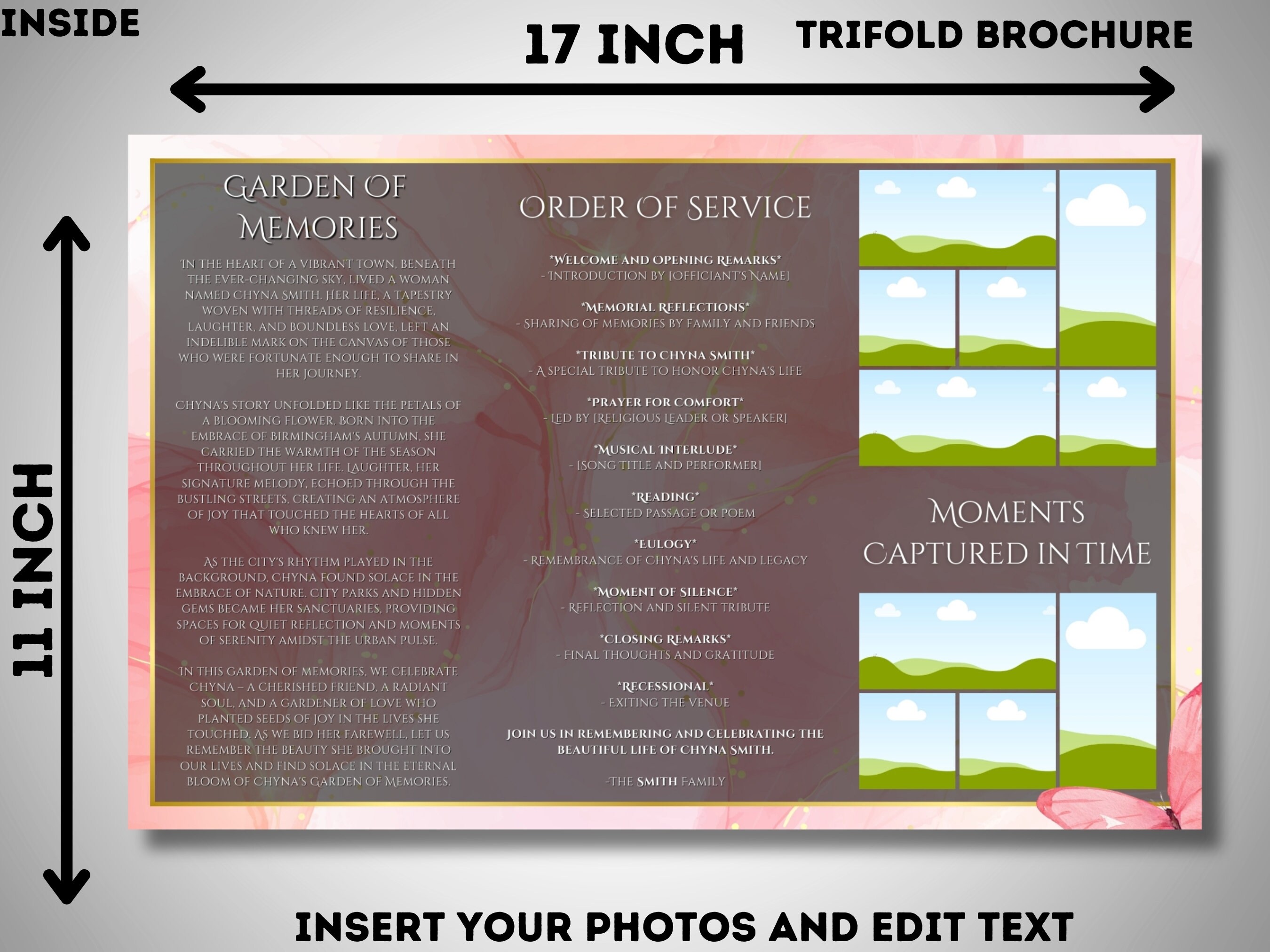 TRIFOLD FUNERAL TEMPLATE 17x11 Obituary Program Pink Marble Canva