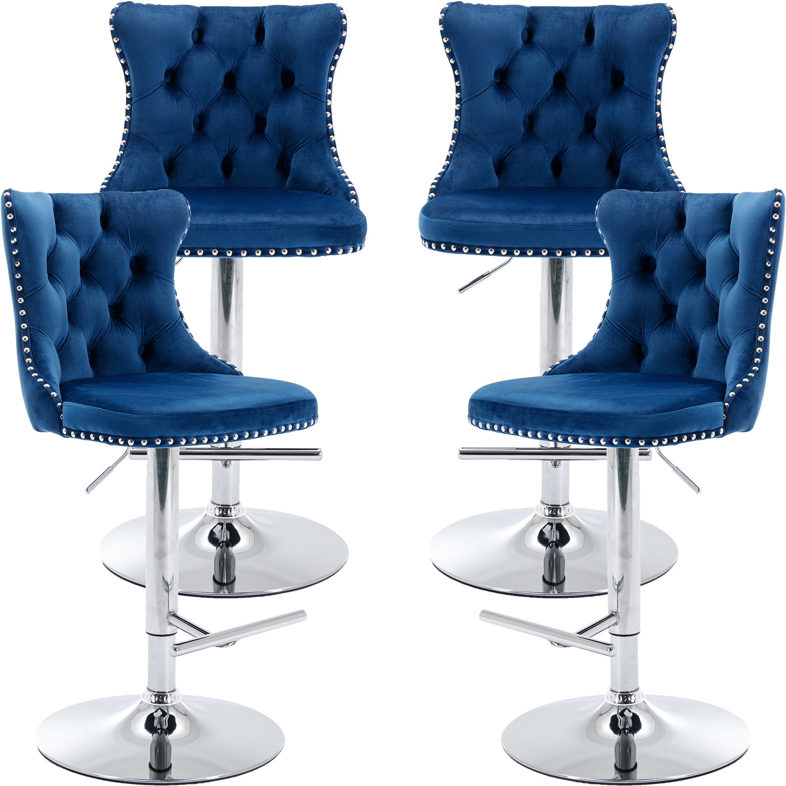 ODUSE DAILY Set of 4 Navy Velvet Barstools Adjustable Swivel Tufted