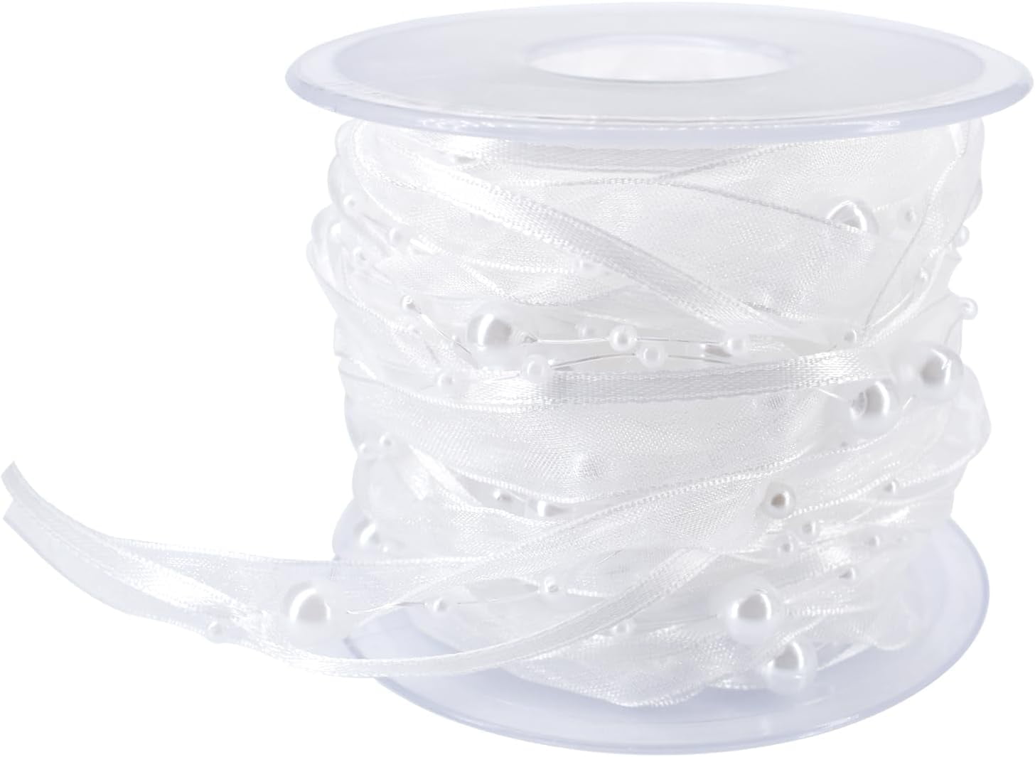 10M/11Yd Artificial Bead Pearl Ribbon Chiffon Ribbon and Organza Lace