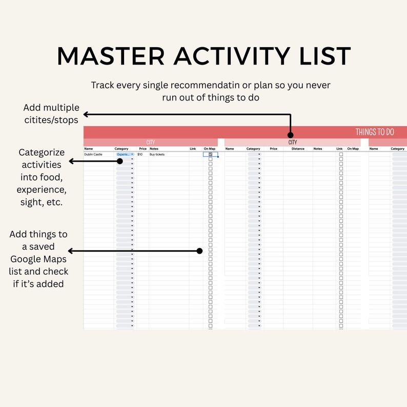 Beginner friendly Vacation Planner Excel Google Sheets Travel