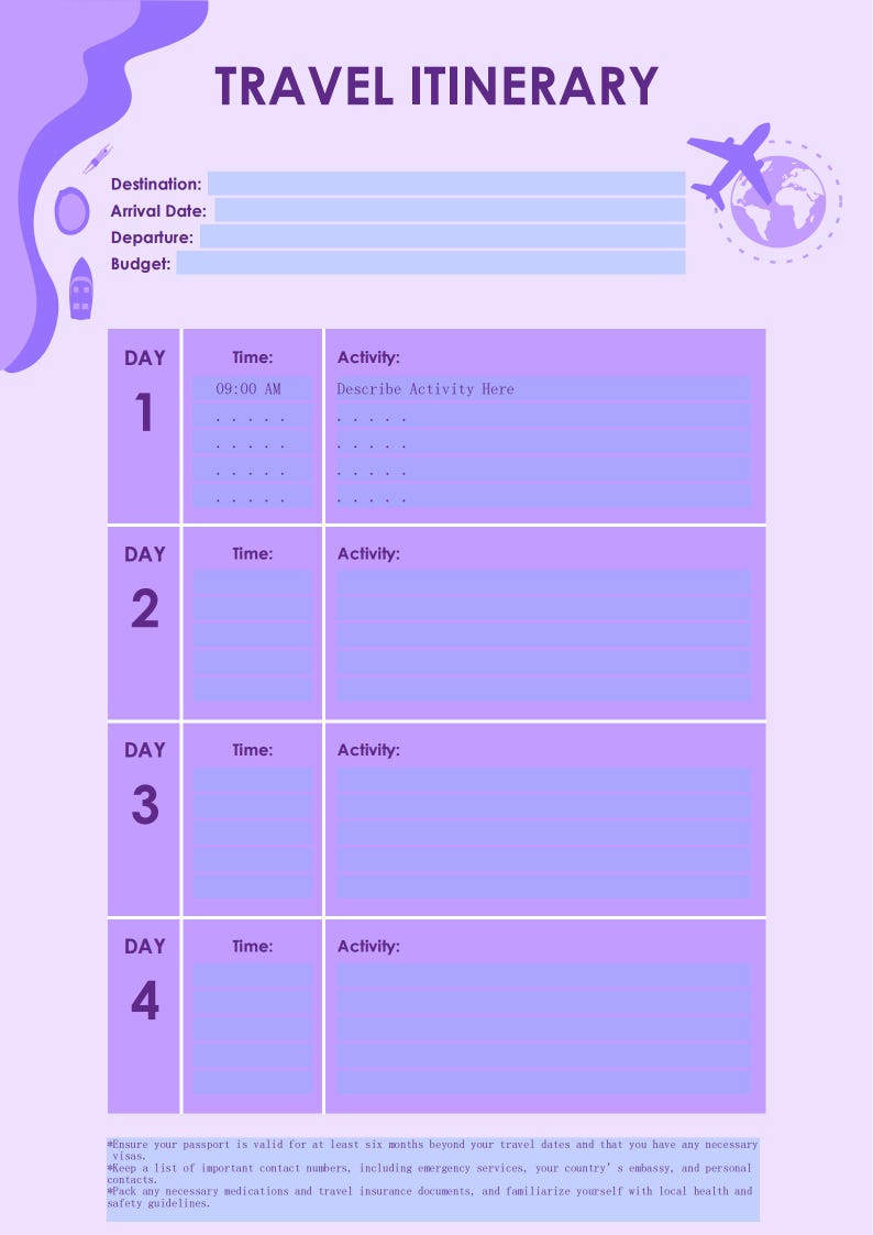 Editable Travel Itinerary Template Bundle (word Excel PDF) Etsy