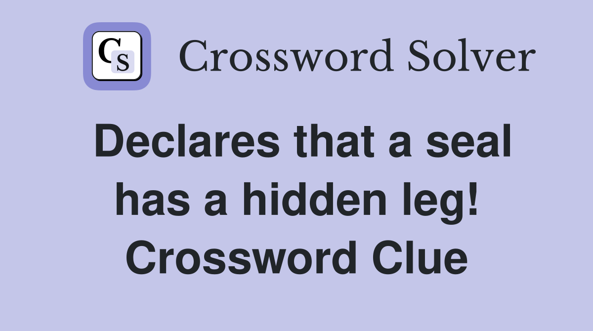 Declares that a seal has a hidden leg Crossword Clue Answers