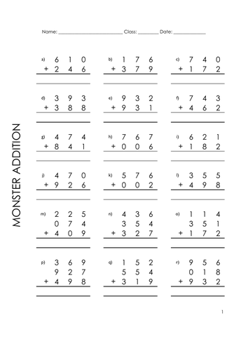 Fourth Grade Addition Worksheets Multi Digit Addition edHelper com