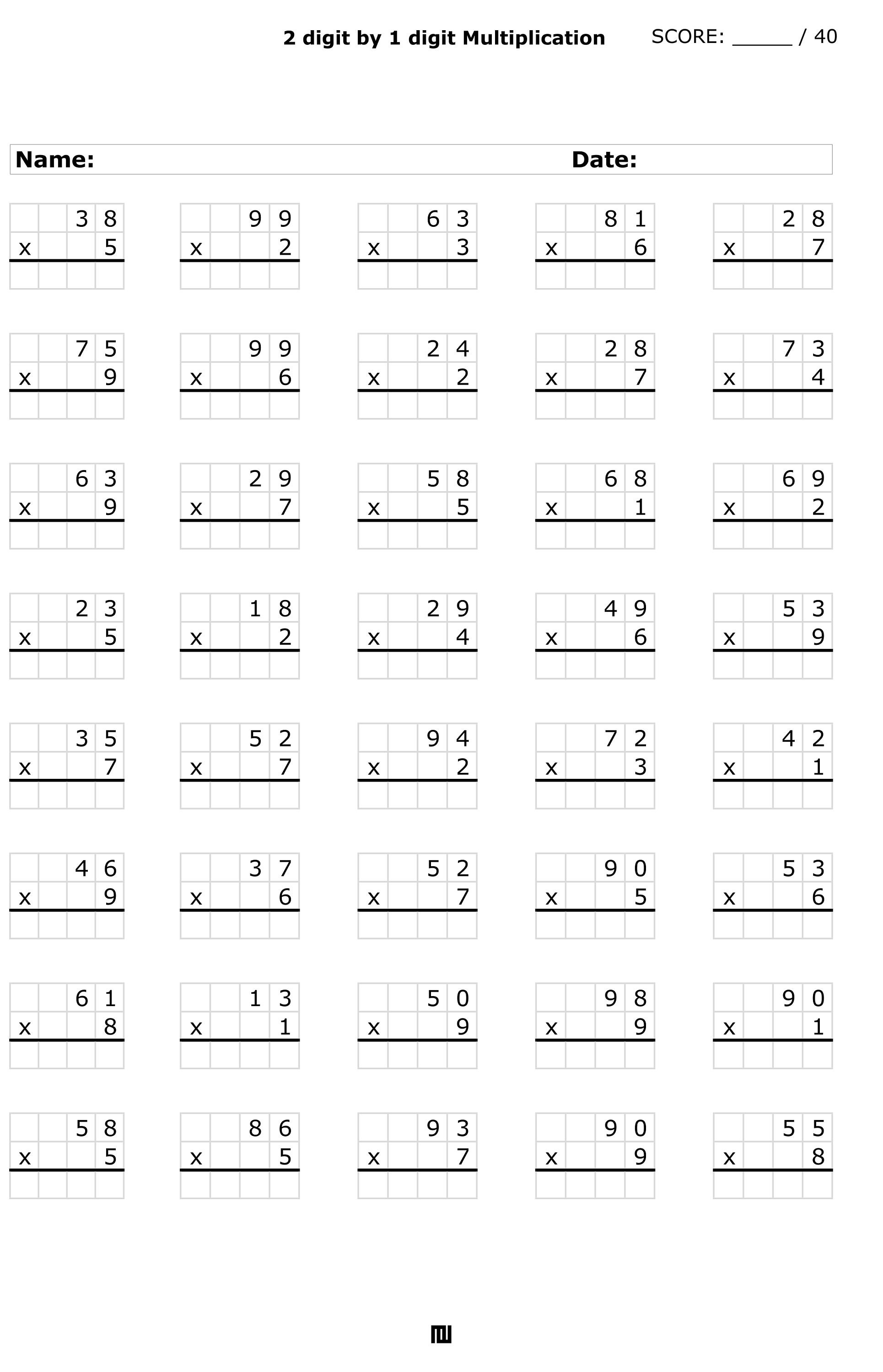 Multiplying 2 Digit by 1 Digit Numbers for Daily Practice to Improve