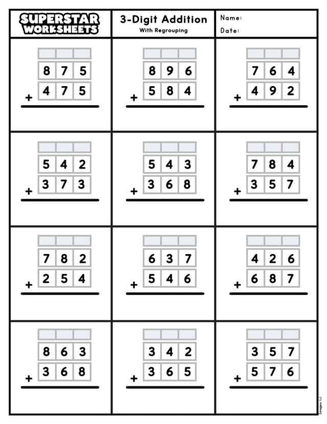 Triple Digit Addition and Subtraction with Regrouping 12 Worksheets