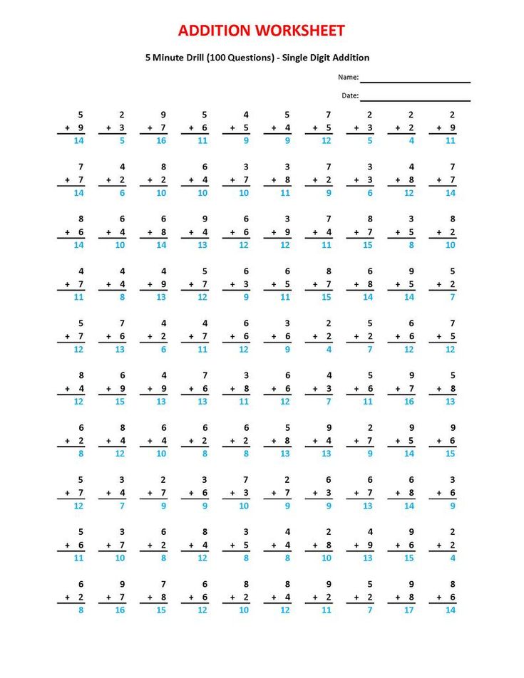 Addition 5 Minute Drill V 10 Math Worksheets With Answers/pdf