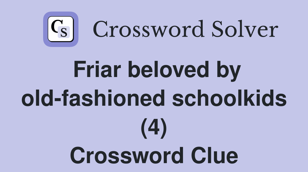 Friar beloved by old fashioned schoolkids (4) Crossword Clue Answers