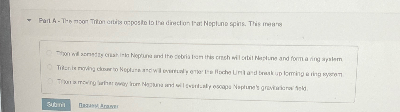 Solved Triton orbits in the same direction as Neptune #39 s Chegg com
