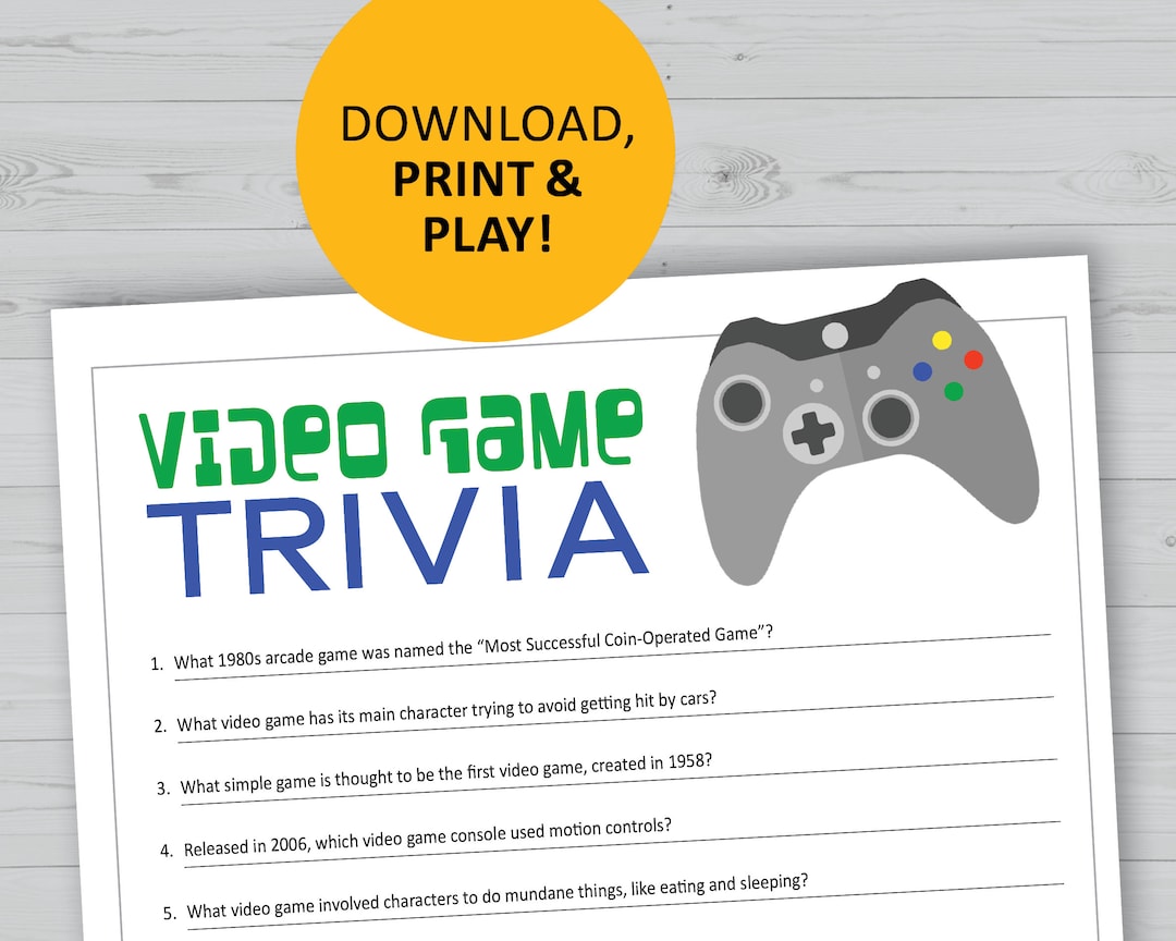 Video Game Trivia Gamers Printable Instant Download Party Games