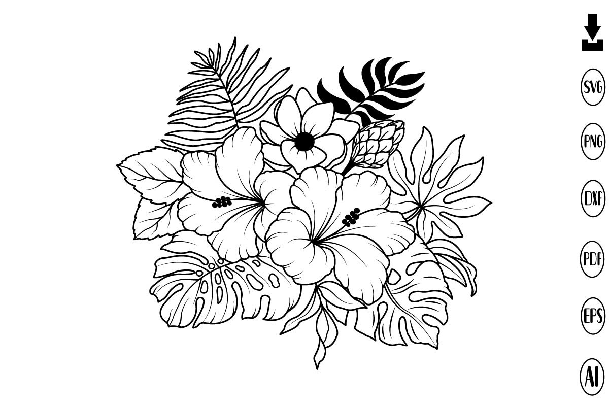 Tropical Flower Svg Hibiscus and Tropical Leaves Svg