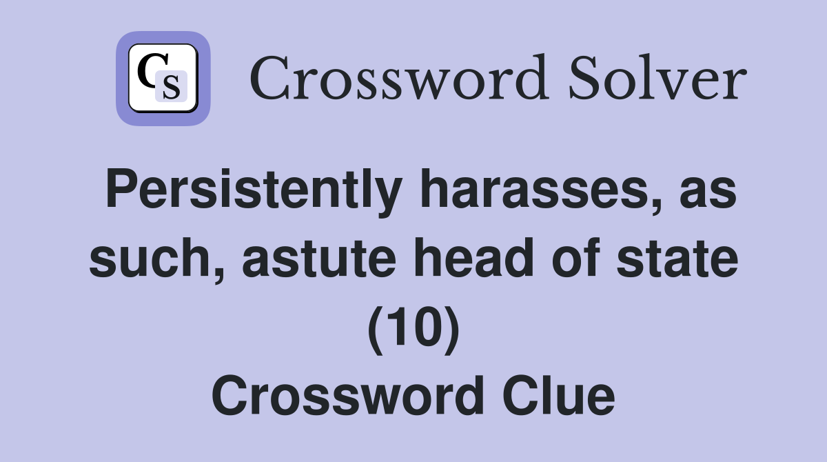 Persistently harasses as such astute head of state (10) Crossword