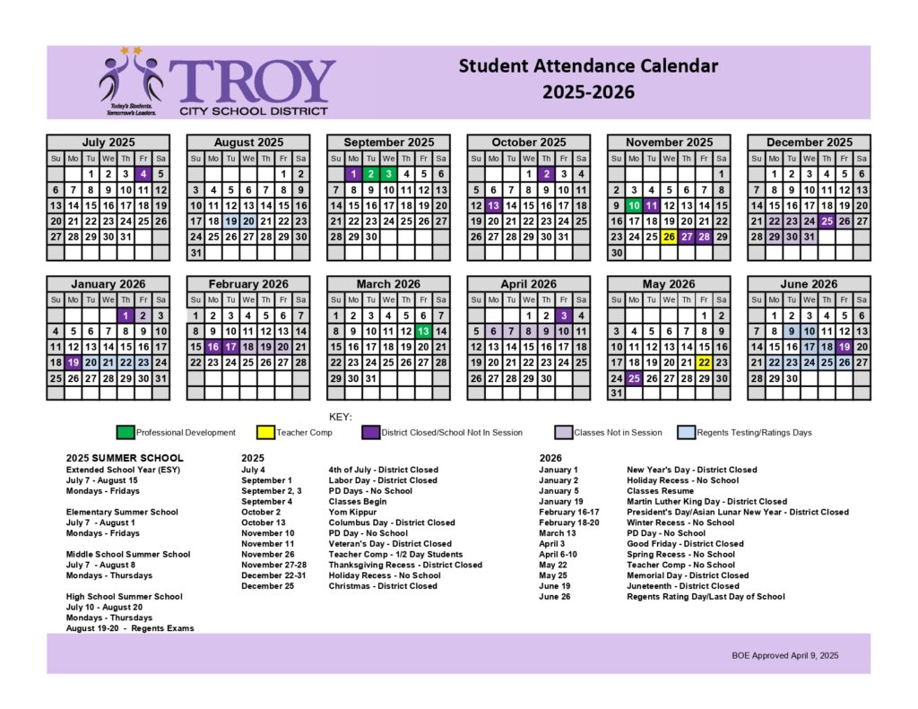 Troy City School District Calendar 25 26 Revised PDF EduCounty