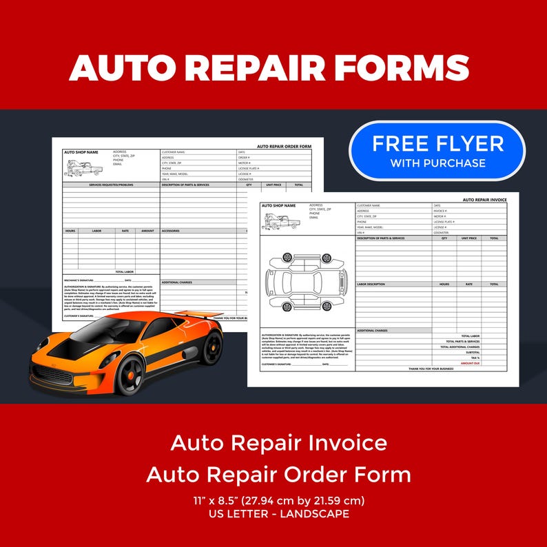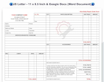 Auto Repair Invoice Template Google Docs (word Document) Etsy