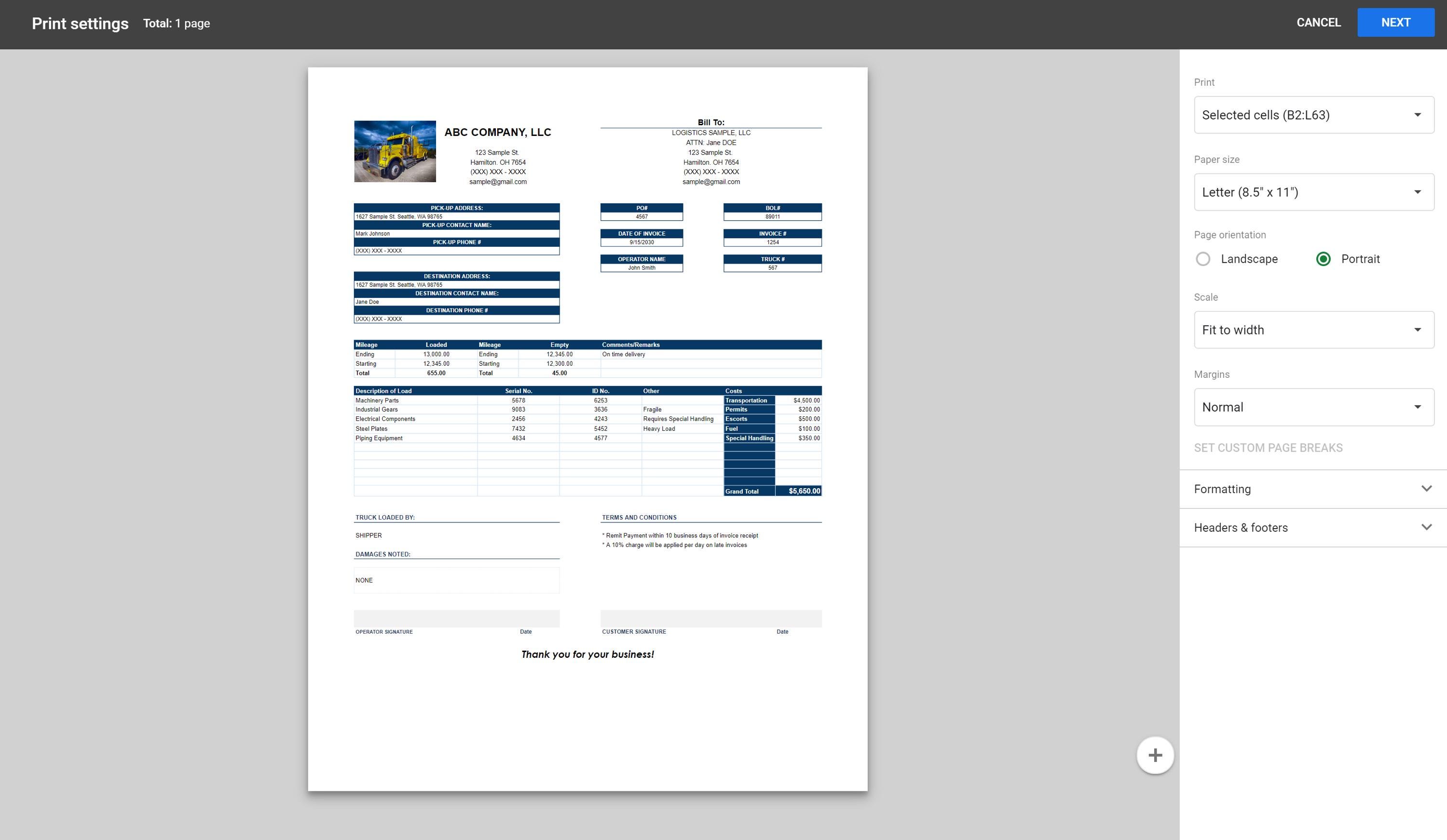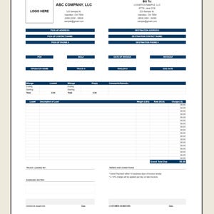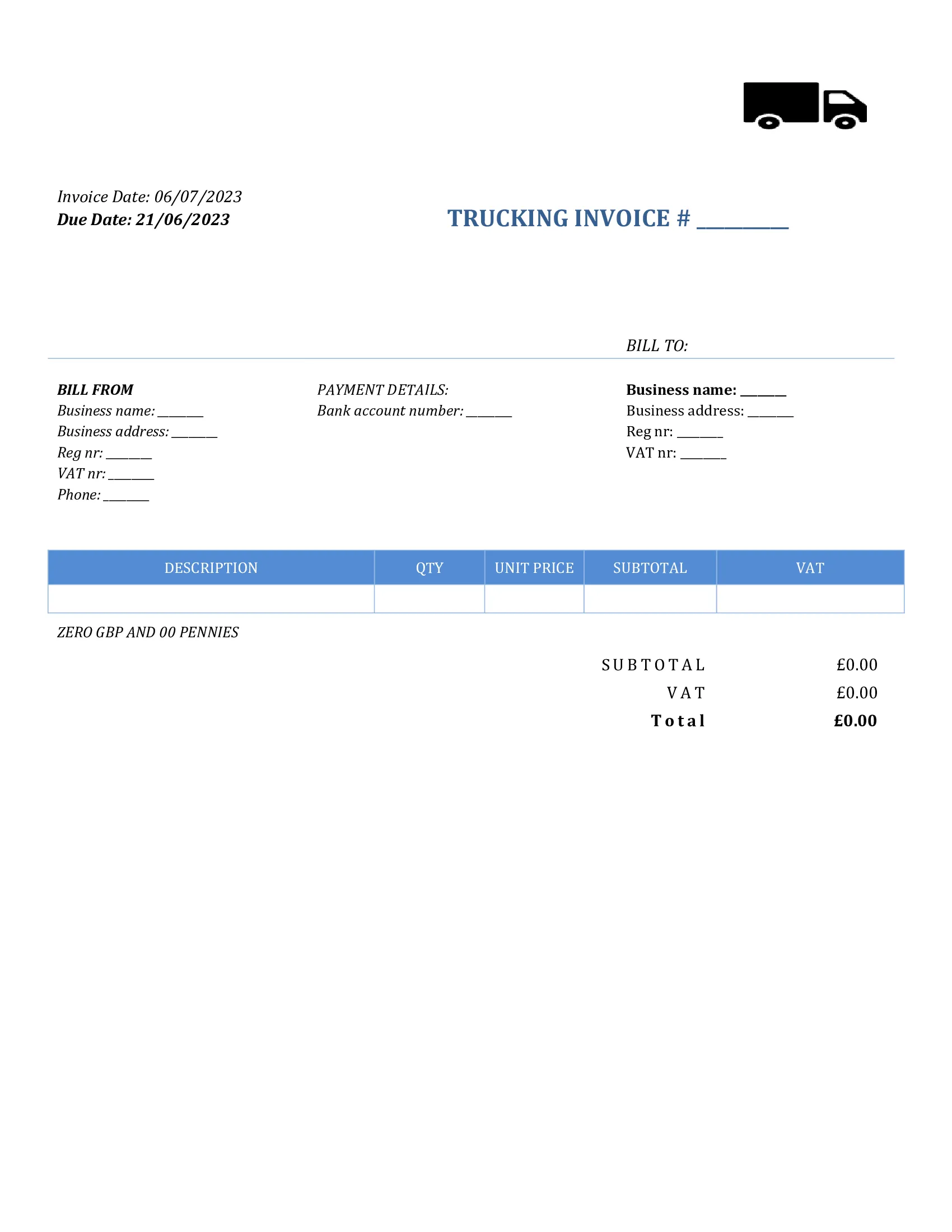Trucking Invoice Printable Template in PDF Word Excel Invoice