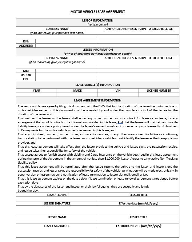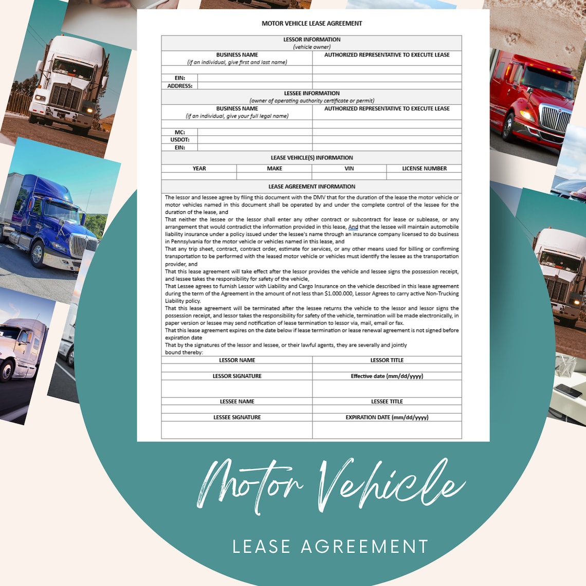 Trucking Lease Agreement︱motor Vehicle︱lessee Contract︱instant Download
