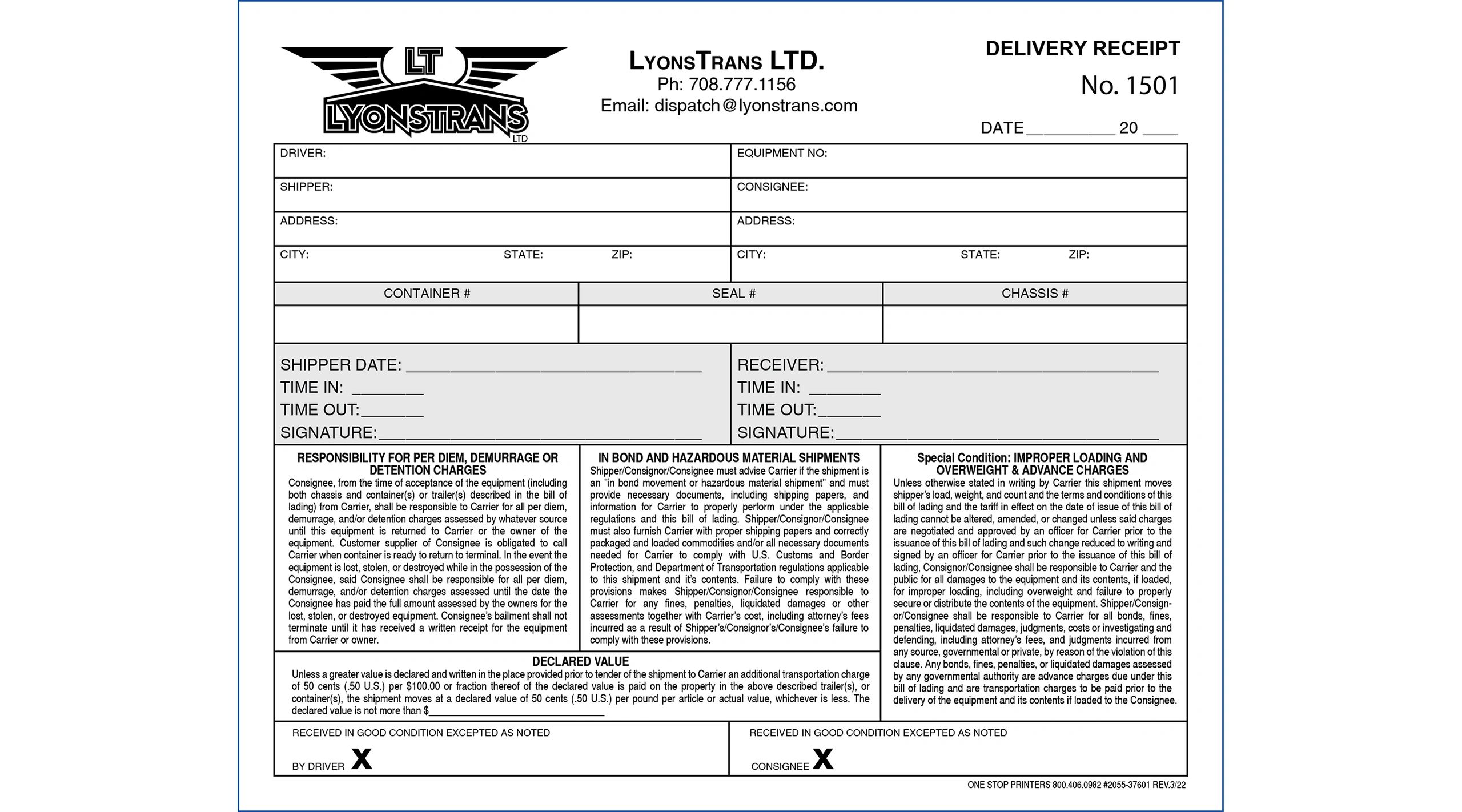 Trucking Delivery Receipt Google Docs (word Document) Etsy