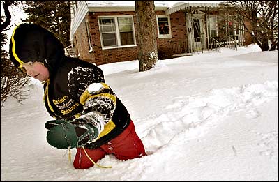 Trudge through Deep Snow in Foggy Winter Landscape Stock Image Image