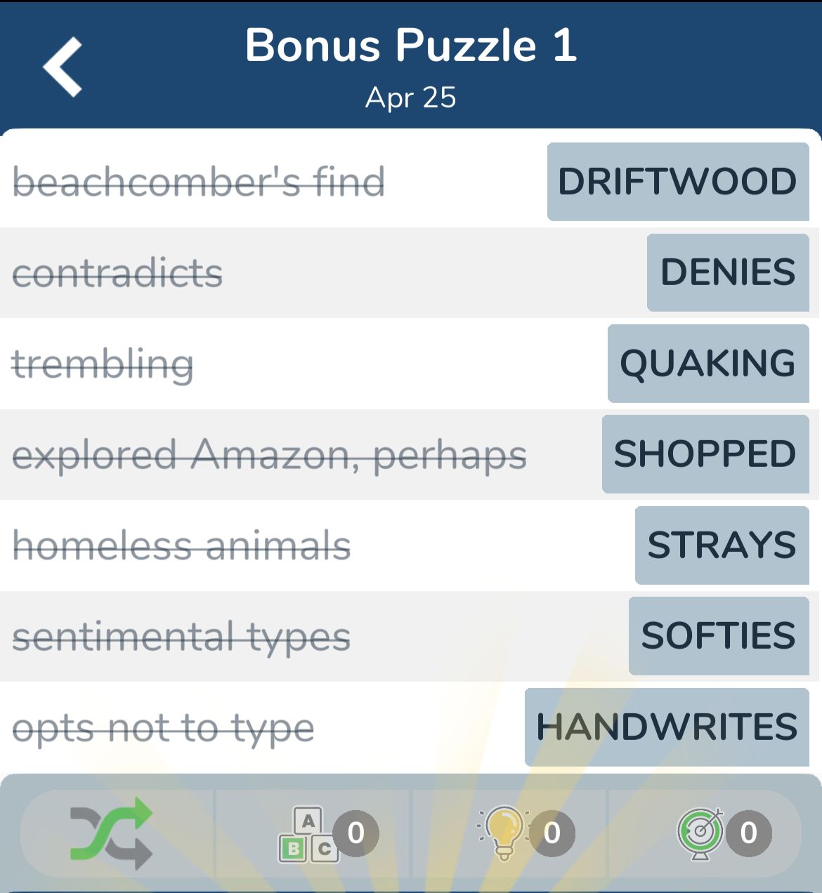 7 Little Words April 25 2024 Bonus 1 qunb