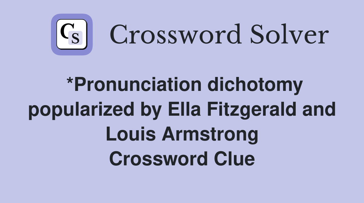 *Pronunciation dichotomy popularized by Ella Fitzgerald and Louis