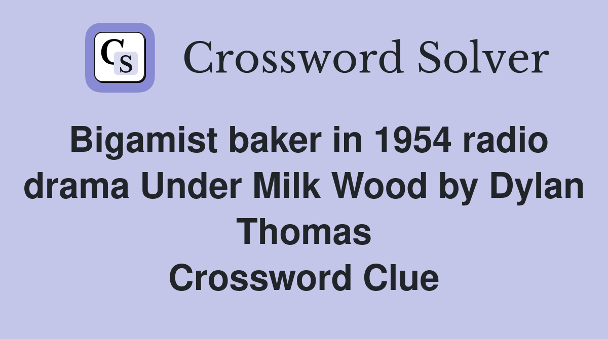 Bigamist baker in 1954 radio drama Under Milk Wood by Dylan Thomas